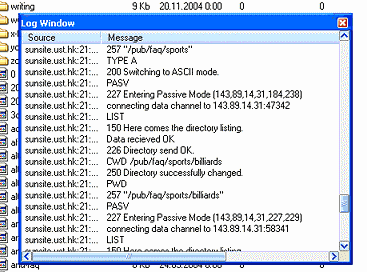 - In "Log Window" window you may control the process of connecting to a server and see different informative or error messages